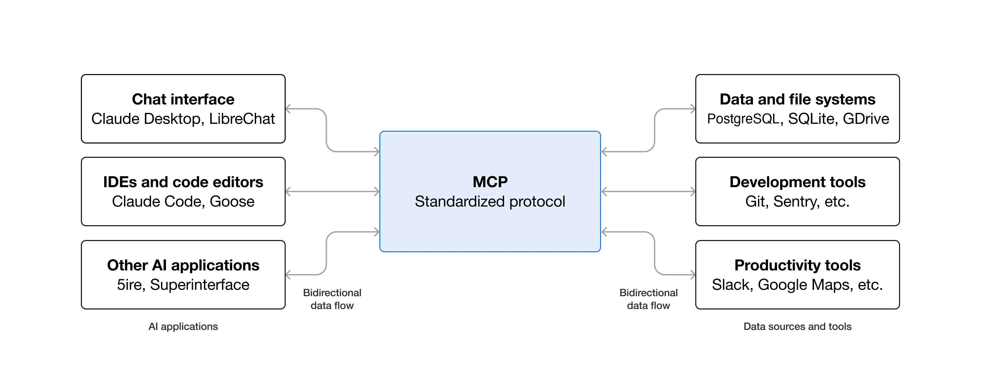 - AI applications or agents: MCP provides access to an ecosystem of data sources, tools and apps which will enhance capabilities and improve the end-user experience.